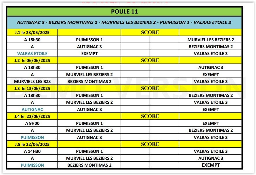 Liste des catégories Elites et Honneurs dans le dpt de l'Hérault
