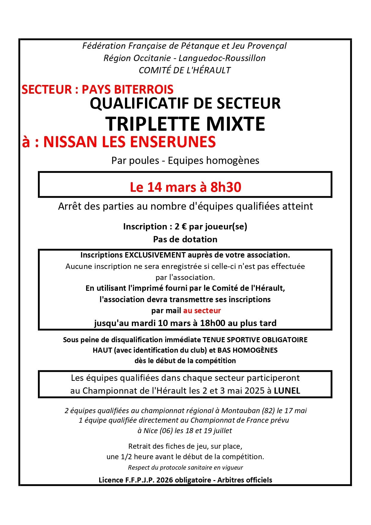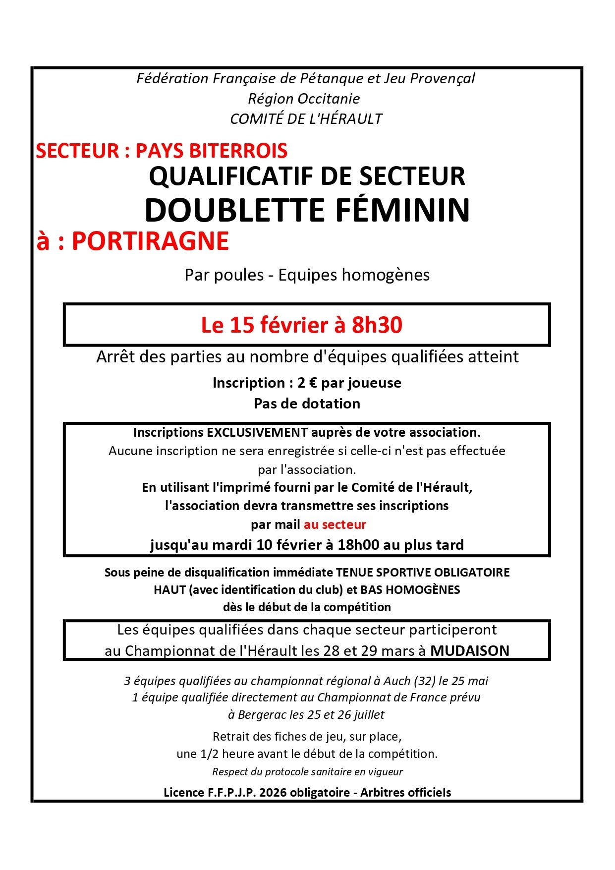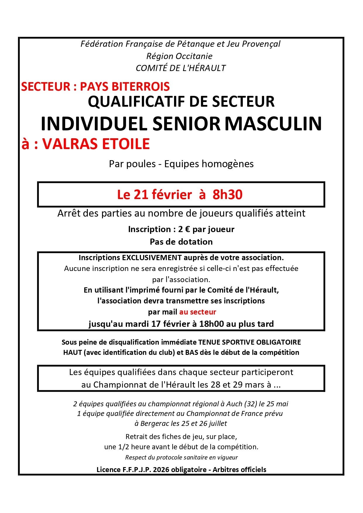 Liste des catégories Elites et Honneurs dans le dpt de l'Hérault